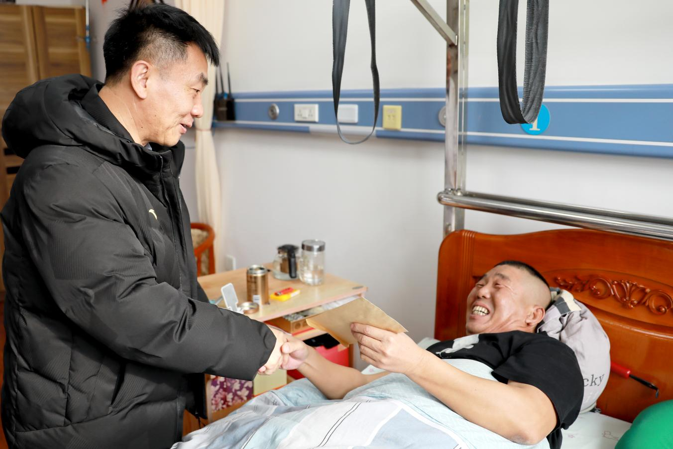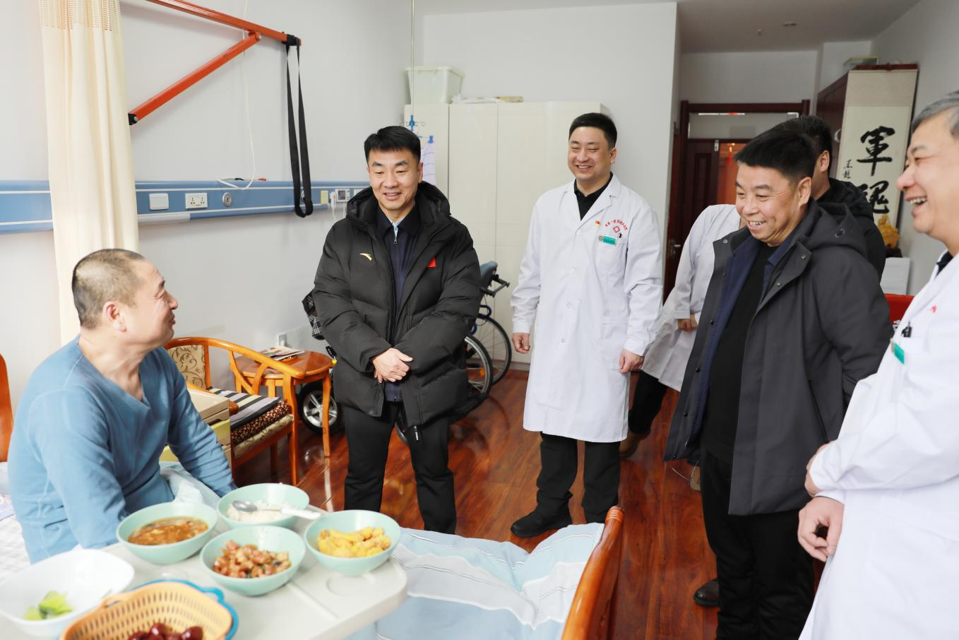 在省第一荣军优抚医院,省退役军人事务厅党组成员、副厅长王东平详细询问困难党员代表、荣誉军人周宏峰和顾世宝的身体康复状况和日常生活情况,认真倾听他们的实际需求和对医院服务的意见建议。王东平表示,荣誉军人是党和国家的宝贵财富,为国防和军队建设作出了重要贡献,党和政府与人民永远不会忘记。他叮嘱两位同志保重身体,安心休养,祝愿他们新春愉快、健康长寿。