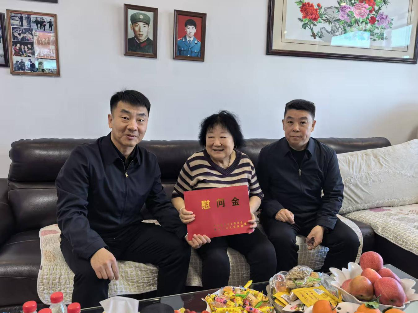 随后,王东平来到全国第二期最美拥军人物、“双烈属”付淑芝老人家中进行慰问。付淑芝是原黑龙江省公安消防总队哈尔滨市支队道外中队副中队长马玉清烈士的妻子、顾乡中队代理副中队长马忠学烈士的母亲,如今独自生活,身患糖尿病、高血压、白内障等多种疾病。即便命运多舛,但老人始终坚守初心、心怀大爱,先后荣获全国十大“英雄母亲”、黑龙江省首届“优秀兵妈妈”等多项荣誉称号。她常年关怀消防官兵,将他们当作自己的子女,其感人事迹在官兵中广为传颂。王东平叮嘱付淑芝保重身体、保持乐观心态,继续发挥余热,多提宝贵意见建议,助力全省退役军人工作高质量发展。