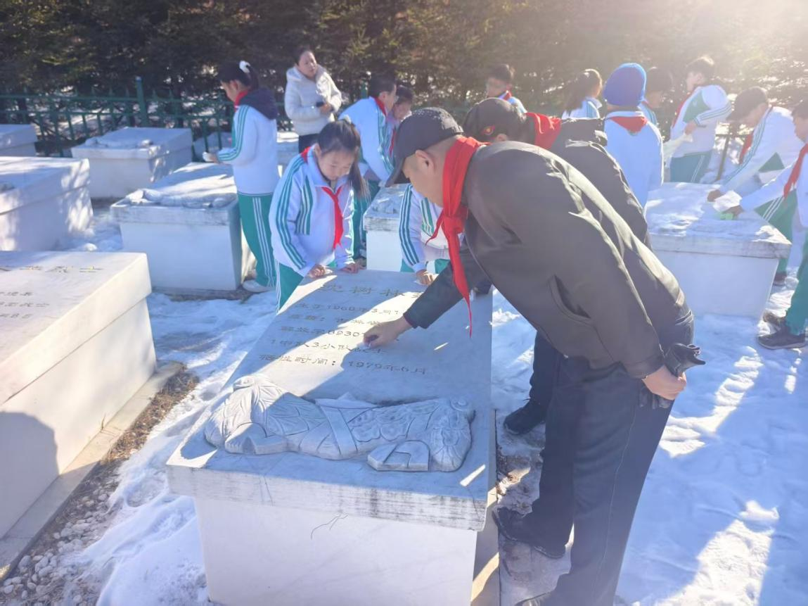 大兴安岭地区军休所联合学校开展“缅怀先烈寄哀思・军魂育苗向未来”活动,军转干部与少先队员共同默哀、清扫墓碑,以老少携手的方式传承红色基因,厚植青少年家国情怀。