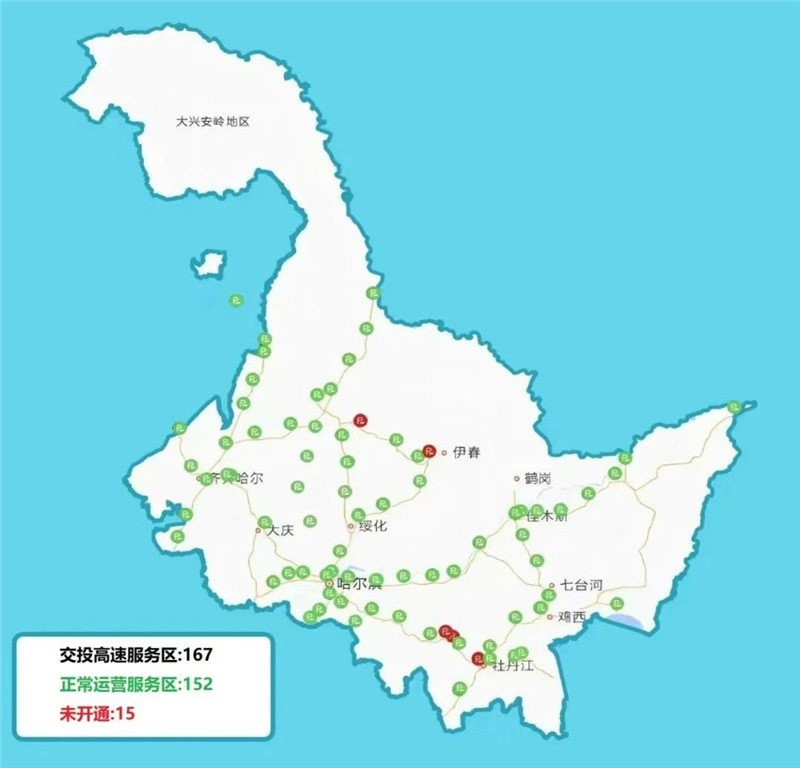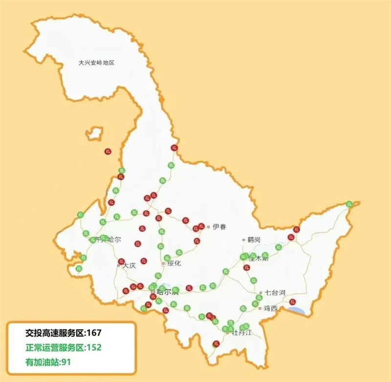 黑龙江省交投高速路网内共有服务区167处,其中正常运营152处,可提供加油服务的91处,各正常运营服务区充电设施达到100%覆盖,充电车位309个,移动充电枪72个。“五一”假期期间,服务区客流量增幅较大,“潮汐”特征明显,易拥堵时段集中在8点-11点、14点-18点。