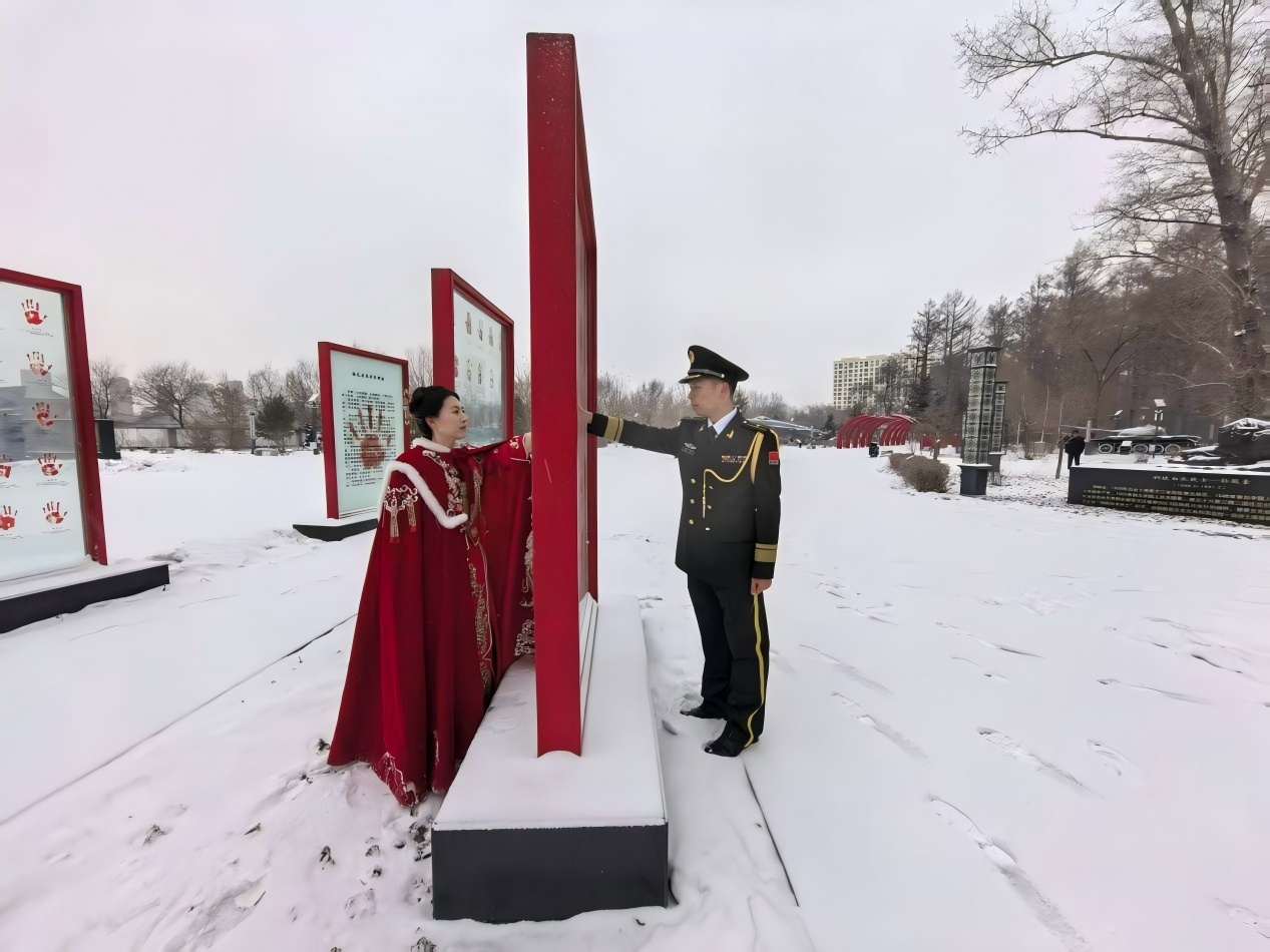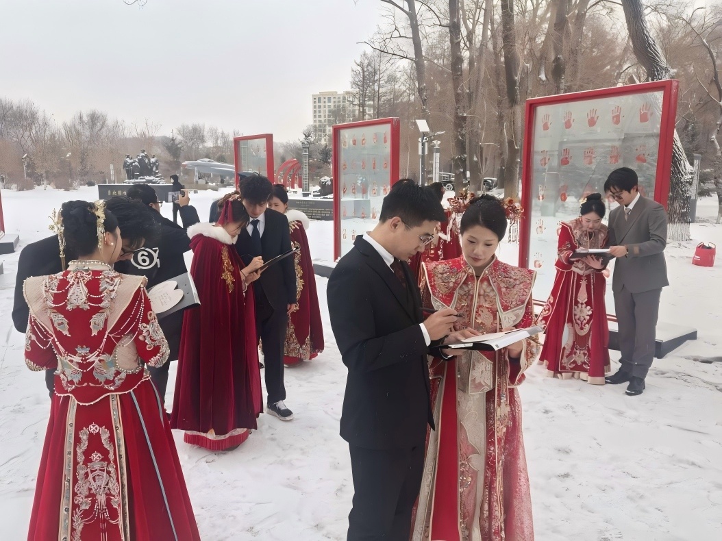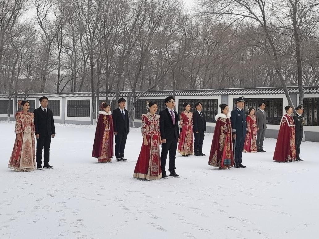 皑皑白雪铺就崇敬之路,灼灼红妆点亮冬日温情。7对新人,带着对英烈的追思与对未来的期许,共赴这场家国与爱情交织的特殊之约。