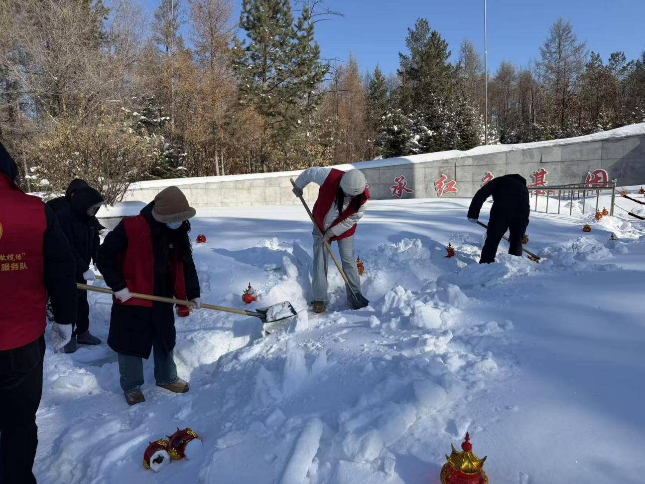 大兴安岭地区志愿者在零下30摄氏度天气中清理冰雪