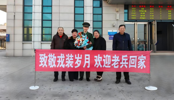 在火车站设置醒目宣传牌、标语,营造浓厚崇军氛围;在退役军人服务中心,为退役士兵披红戴花、解读政策、手把手指导办理“一件事”,并送上含有纪念品和法规手册的“政策暖心包”,让退役军人感受尊崇与温暖。