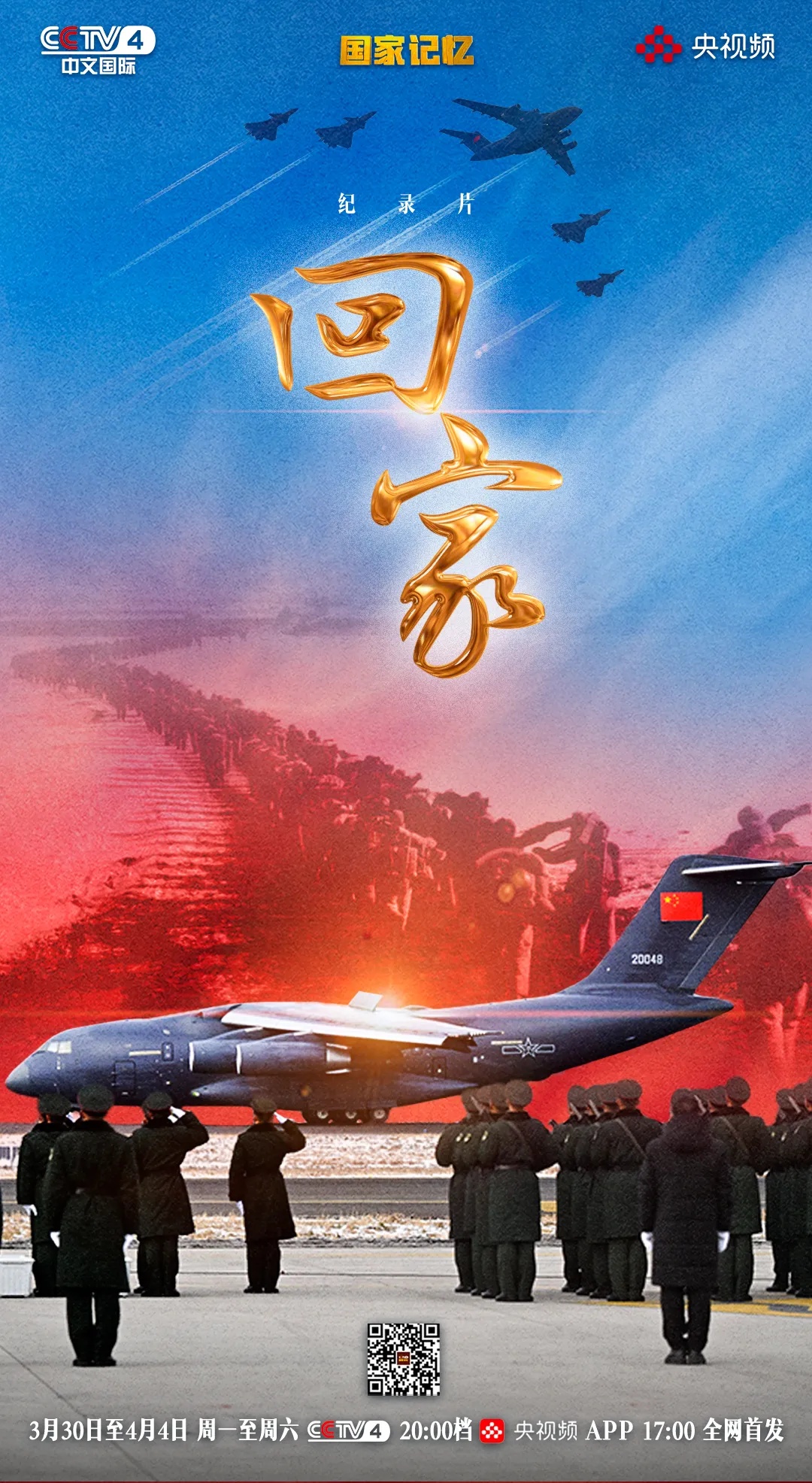 清明之际,为缅怀先烈、铭记历史,传承伟大的抗美援朝精神,由中央广播电视总台与辽宁广播电视集团(辽宁广播电视台)联合出品,总台华语环球节目中心《国家记忆》栏目承制的六集纪录片《回家》,于3月30日起在总台中文国际频道(CCTV-4)20点播出。