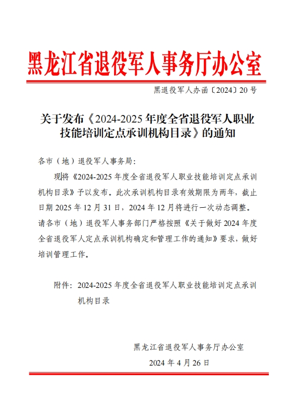 关于发布《2024-2025 年度全省退役军人职业技能培训定点承训机构目录》的通知