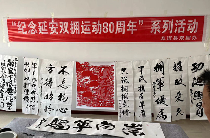 此外,友谊县双拥办通过公众号向全县书法、绘画、剪纸、摄影爱好者发出号召,邀请大家积极参加到庆祝纪念延安双拥运动80周年活动中来,用手中的笔墨描绘军民团结的繁荣景象。