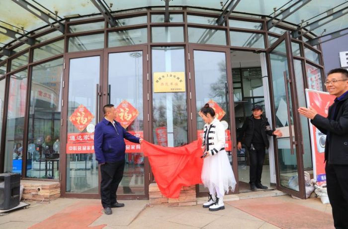 牡丹江市退役军人事务局副局长吴锐为拥军模范单位揭牌