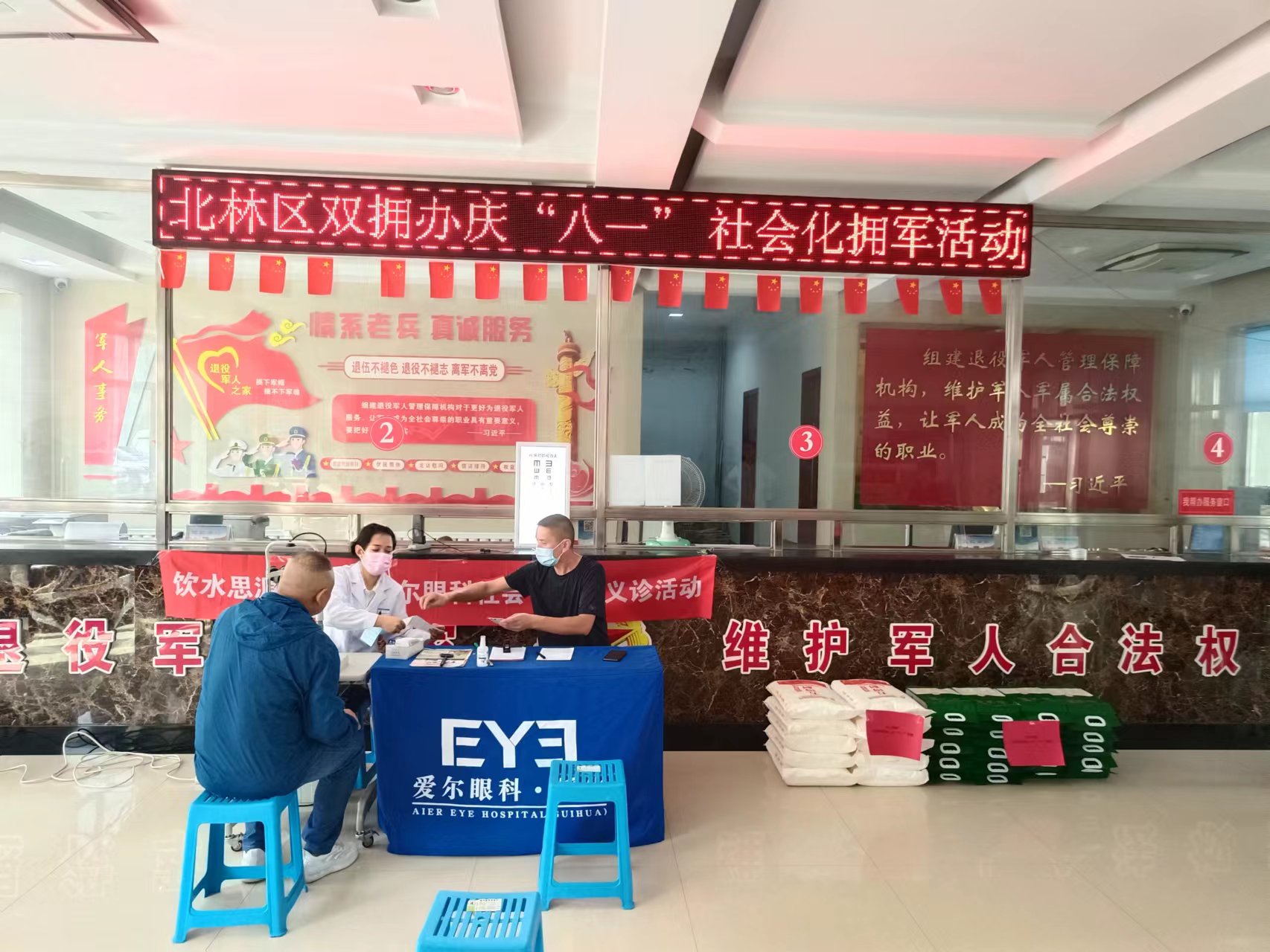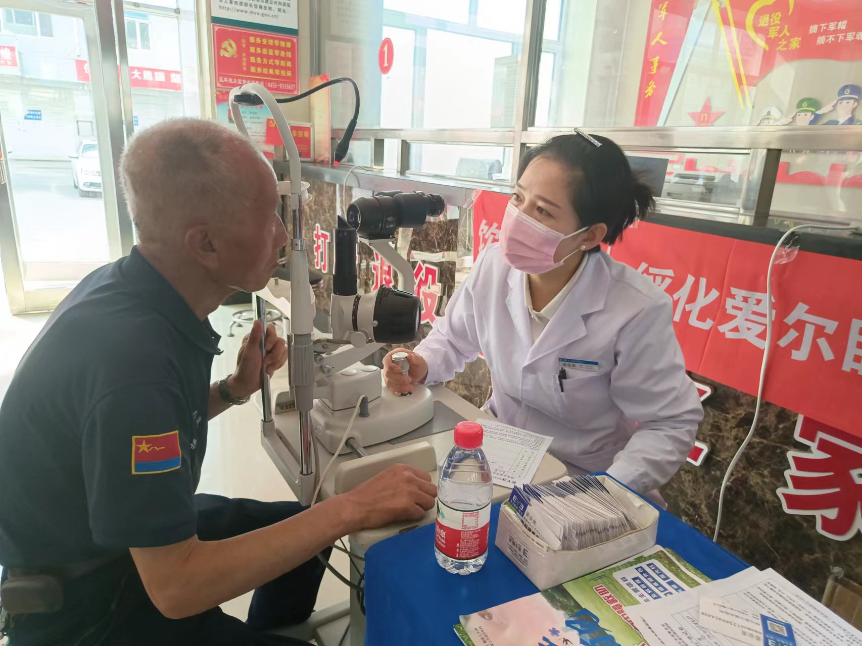 图1:绥化市北林区首批社会化拥军企业绥化爱尔眼科医院为功勋军人及伤残军人代表进行眼科义诊。